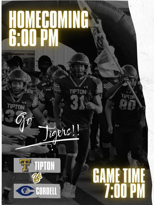 Friday, September 26, 2025 Tipton Tigers Homecoming 6:00 p.m.